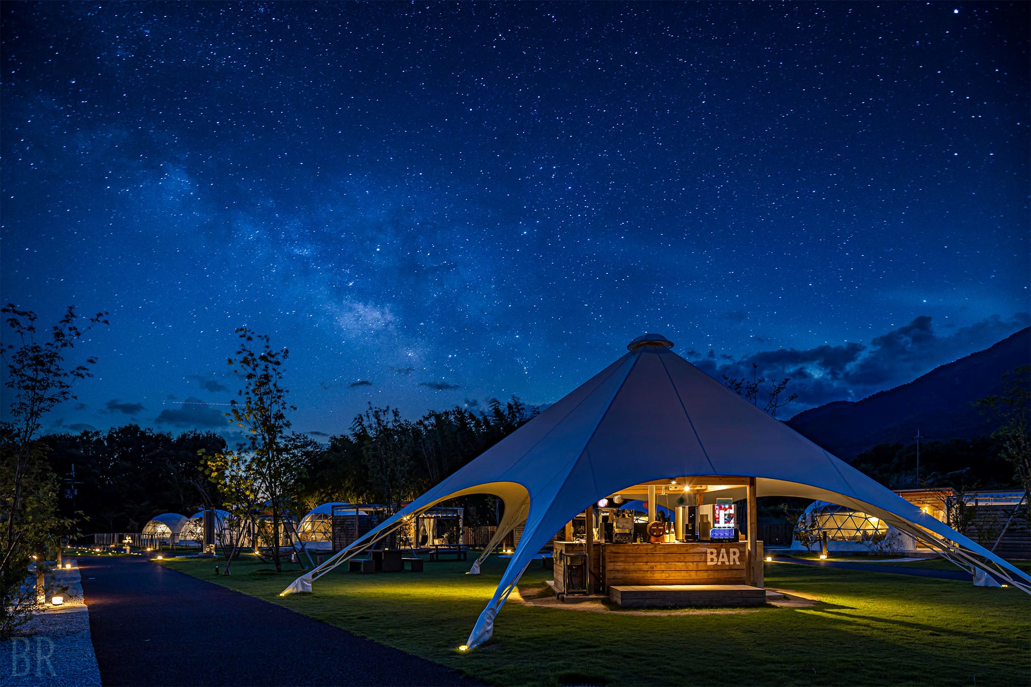 The fire pit is equipped in the center of the site, where you can enjoy the “campfire”, which is a camping experience you should not miss.